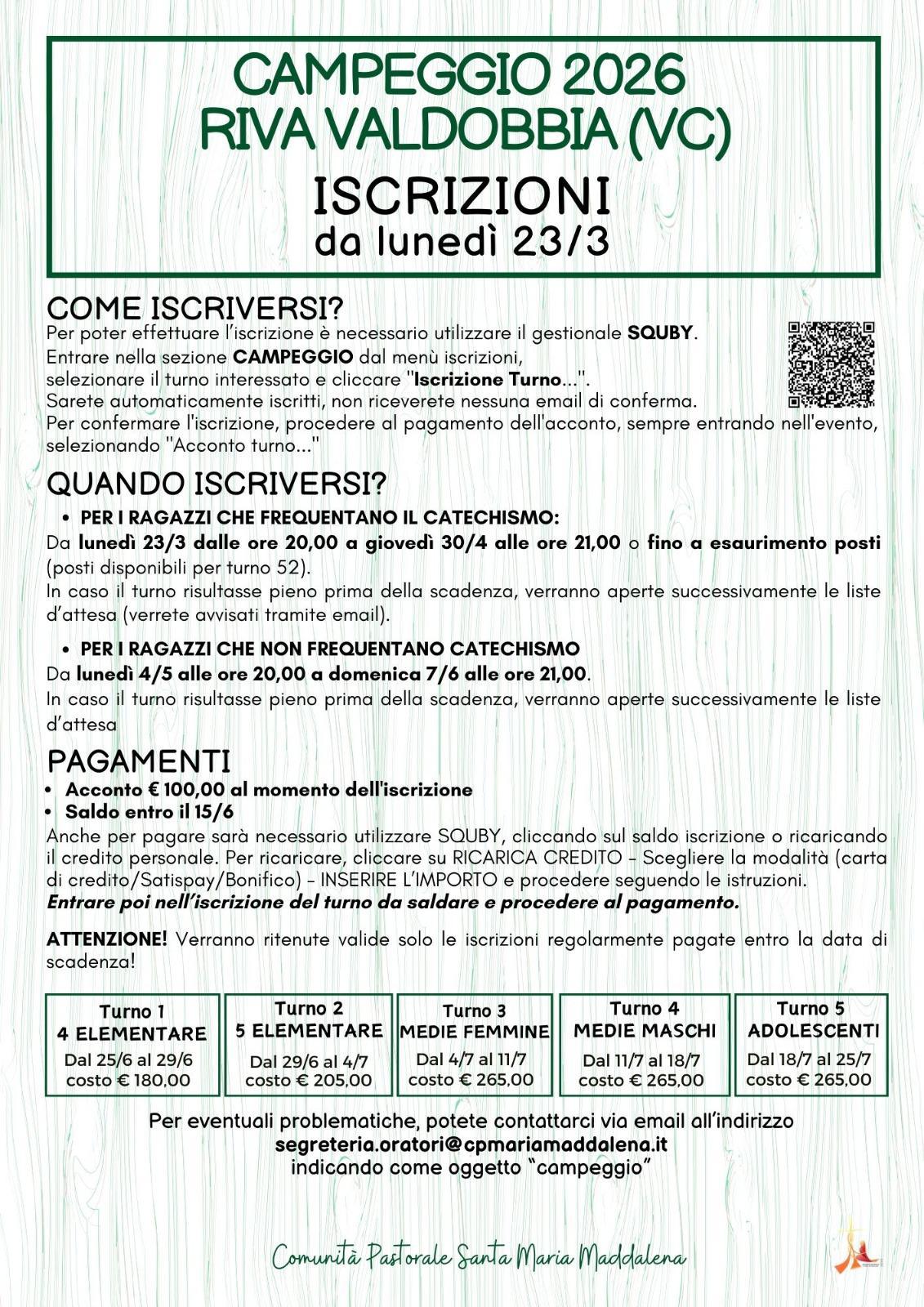 Ecco tutte le informazioni necessarie per iscriversi ai turni di campeggio.